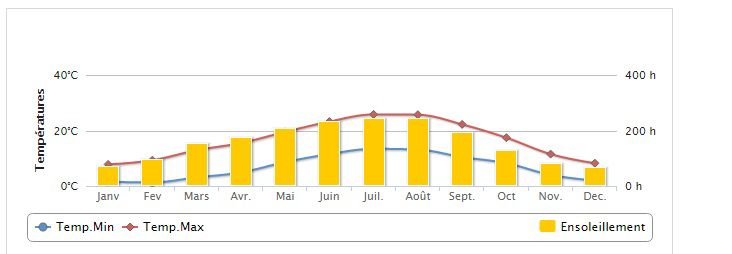 De regio van de Vienne in de Poitou-Charentes kent een gematigd klimaat; er heerst een fris briesje, een grijze ochtend kan snel keren in een zonovergoten dag en de temperatuur heeft een gemiddelde van 5graden warmer dan in België.